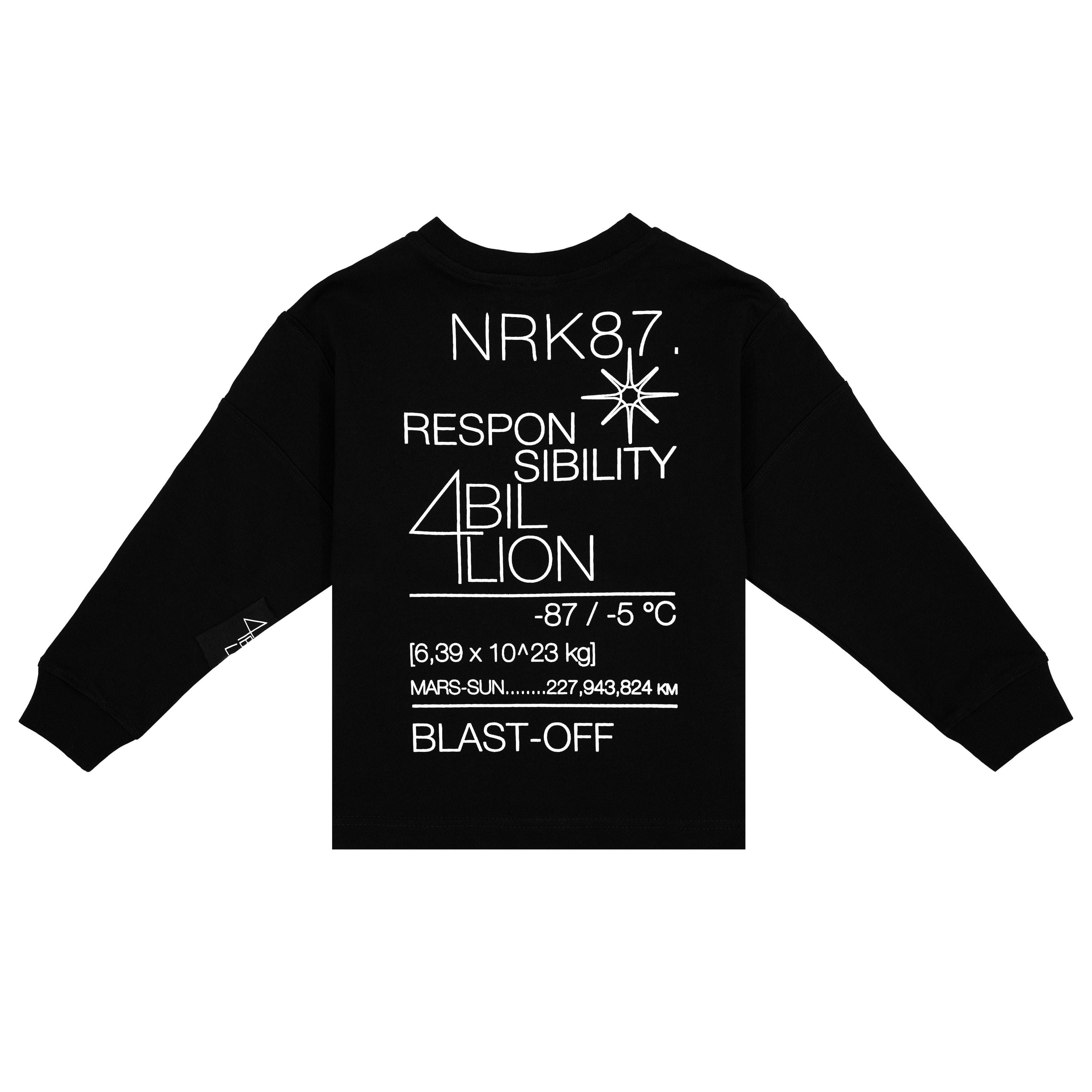 Longsleeve aus glatter Baumwolle in Weiß und Schwarz. Drucke mit Botschaften über den Mars, Symbole und astronomische Elemente. Lockere, weite Silhouette mit überschnittenen Schulternähten. Tragbare Aufdrucke mit Gummizug. Versteckte Tasche mit GPS-Gerät und aufgenähtem NFC-Tag unter dem Logo.