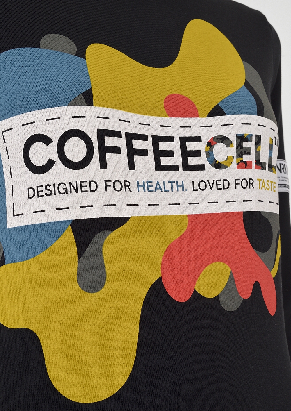 Das Ergebnis der Kollaboration der Gesundheitsproduktmarke COFFEECELL und der Bekleidungsmarke NRK1987. ein unglaublich weiches Sweatshirt mit einem markanten, hellen COFFEECELL-Tarndruck auf schwarzem Futter wurde geschaffen.