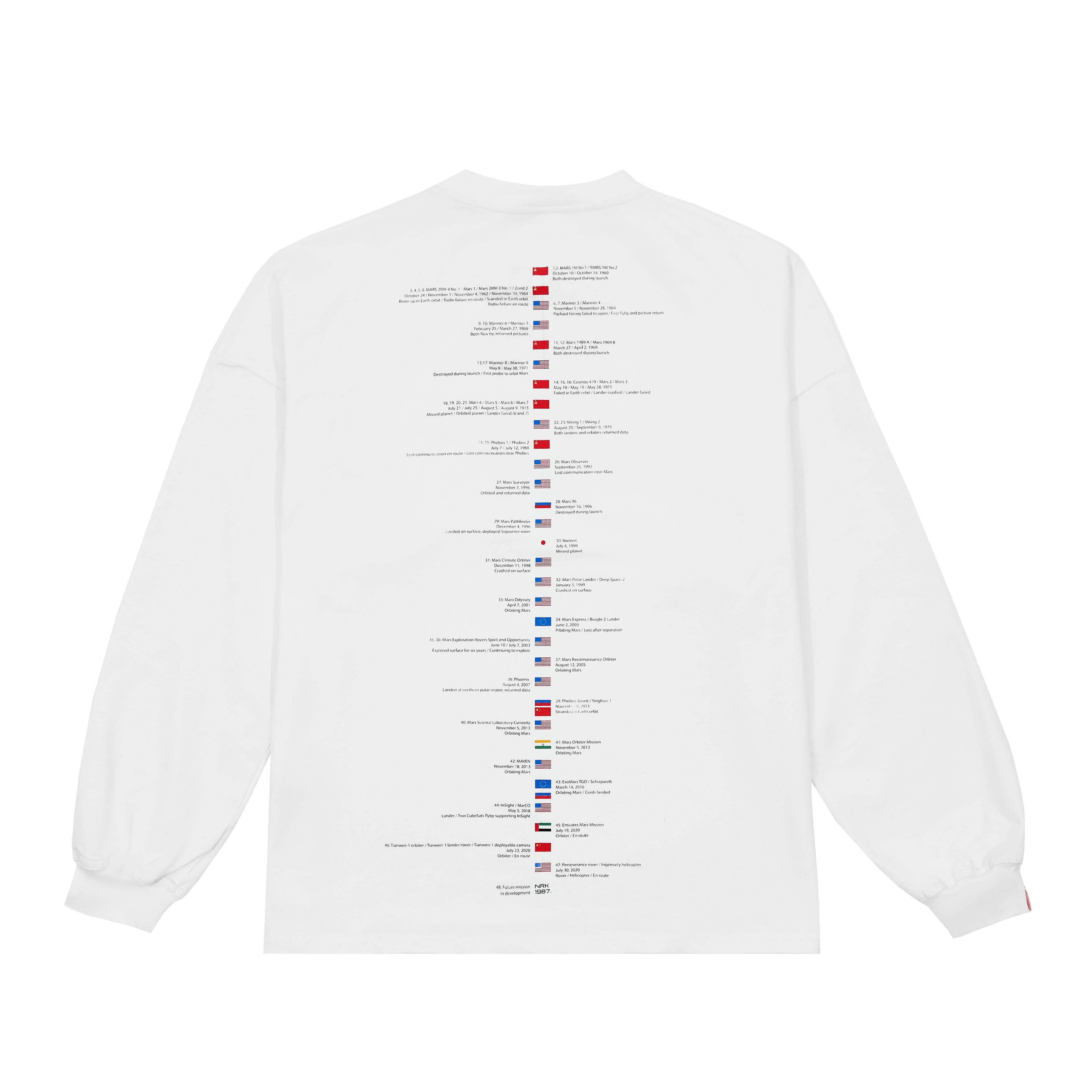 Oversize Longsleeve aus dichter Baumwolle in Weiß und Schwarz. Am Ärmel befindet sich eine versteckte Tasche. Drucke auf Vorder- und Rückseite. NFC-eingebetteter Logo-Tag.