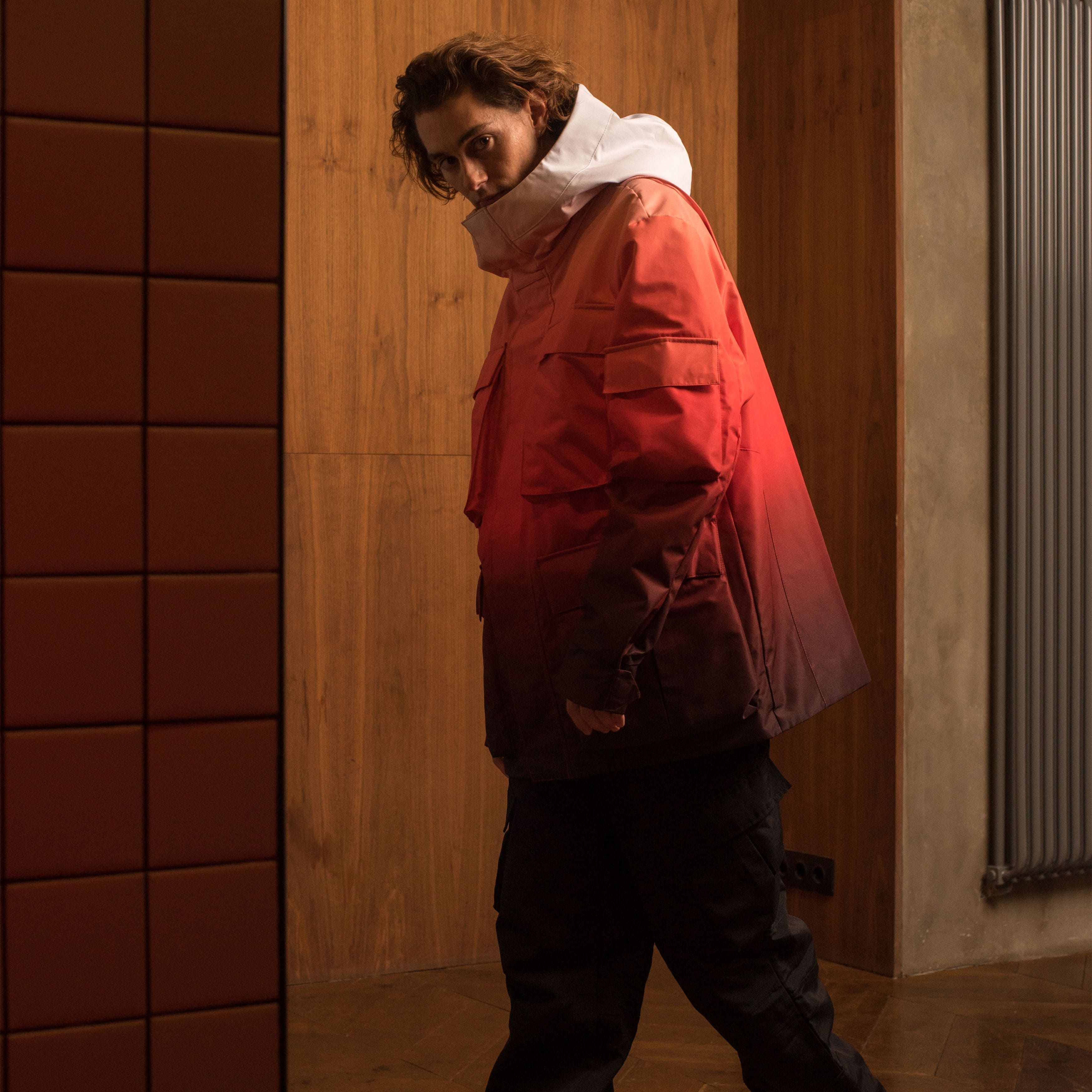 Die Jacke ist in zwei Farben erhältlich: einem Stoffmix in verschiedenen Khaki-Tönen und der Farbverlaufversion in den Farben des Mars. Lockere, weite Silhouette mit langem Ansatz. Starke Markengarnitur, Metallreißverschluss. Dreilagiges Membrangewebe mit 3D-Ripstop-Netzmuster. Frostbeständig bis -30°C - widersteht kurzzeitigem Eintauchen ins Wasser. Ultradünne Dämmung. Schutz vor Regen und Wind.