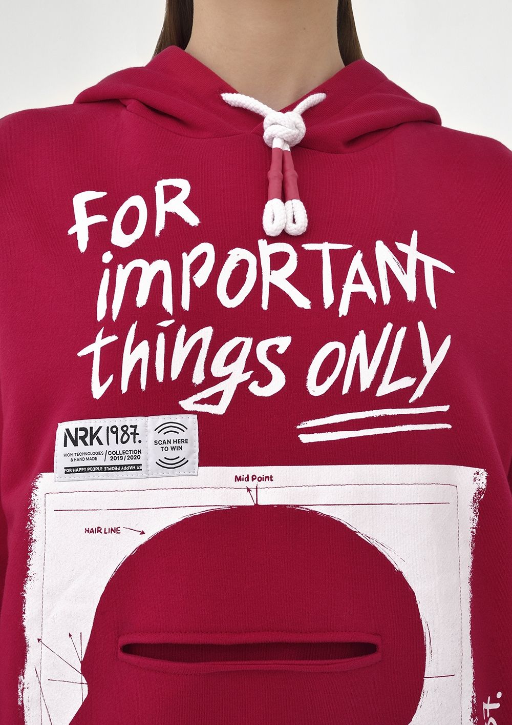 Hoodie leuchtend rot fordert uns zur Selbstentwicklung und Motivation. Die durchgeschnittene Tasche mit individuellem Design, der Aufschrift «For important things» und dem Design in Form eines kontrastierenden menschlichen Profils im Stil eines sozialen Posters symbolisiert die Bedeutung der Gedanken und des Wissens, die wir in unseren Kopf stecken. Und für weniger wichtige Dinge gibt es eine originelle aufgesetzte Tasche «For others» auf der Rückseite. Der Hoodie ist aus überraschend weichem Futter gefertigt und bietet 100% Komfort.