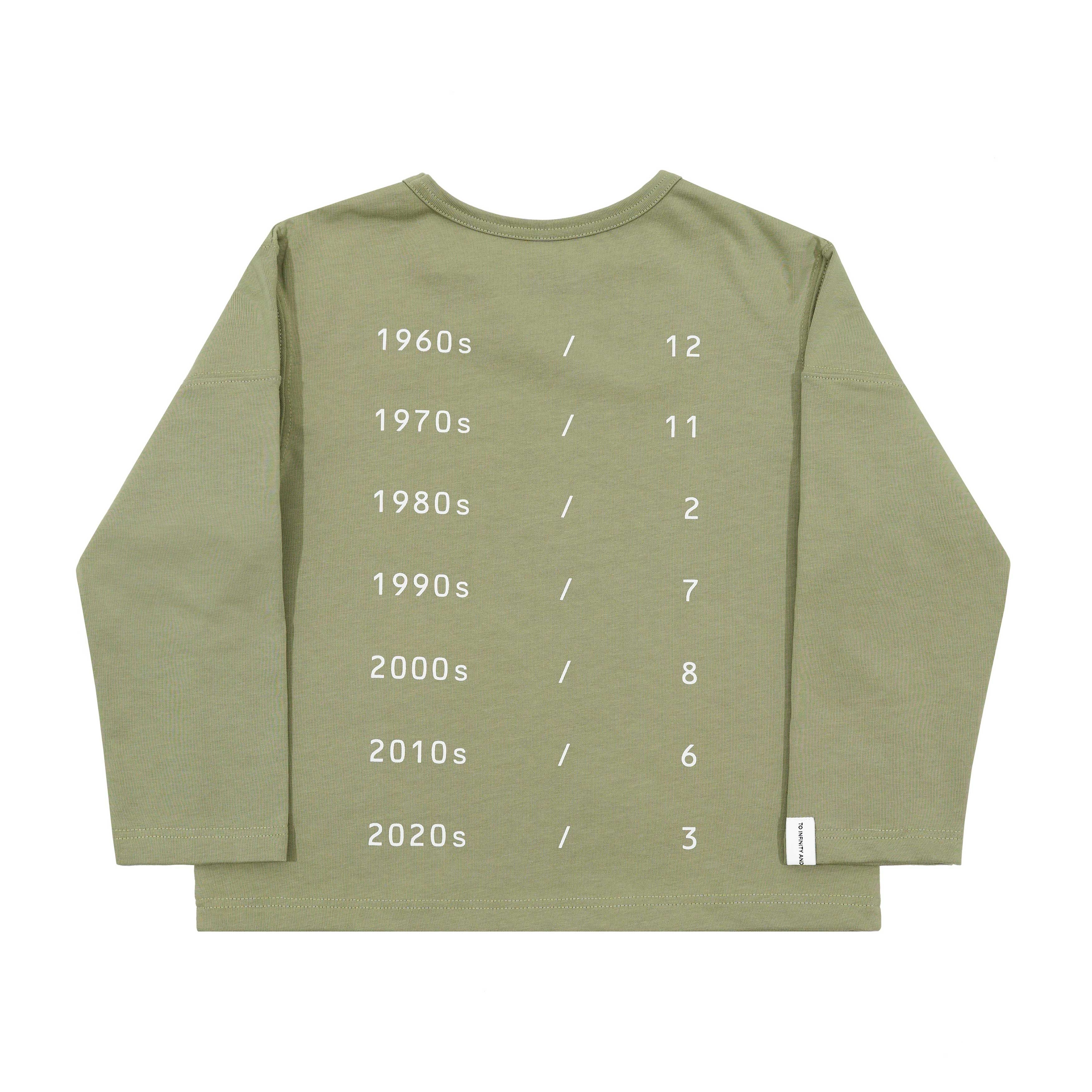 Olivgrünes Longsleeve aus leichter, glatter Baumwolle. Drucke auf Brust und Rücken sind dem Mars gewidmet. Lockere, weite Silhouette mit fallenden Schulternähten. Langlebige Drucke mit zusätzlichem Gummi. Umgekehrte Stoffeinsätze an den Schultern.