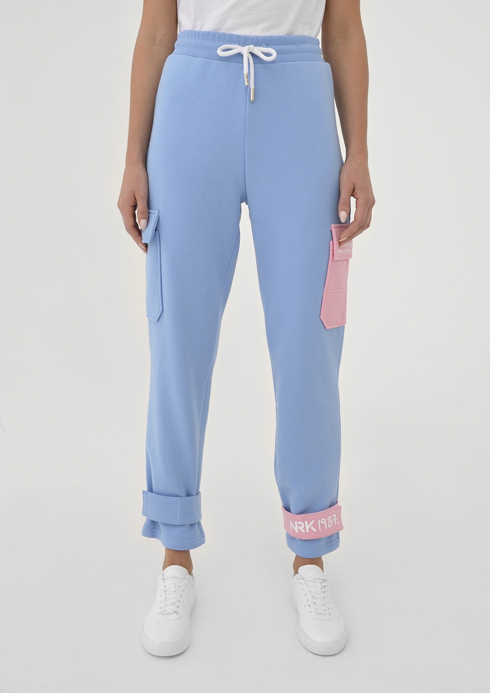 A suit of hoodies and joggers creates a harmonious everyday look, stylish and comfortable. The tandem of life-affirming pink and sky blue favorably emphasizes the romance of your nature or mood. The cotton-based material will help to keep the feeling of comfort for a long time, and the polyester fibers will help to shape the model. Thanks to the roomy pockets on the chest, sleeve and in the joggers, you can take with you and conveniently lay out everything you need. Velcro straps and locking cuffs on the sleeves and legs add practicality and convenience to the model.