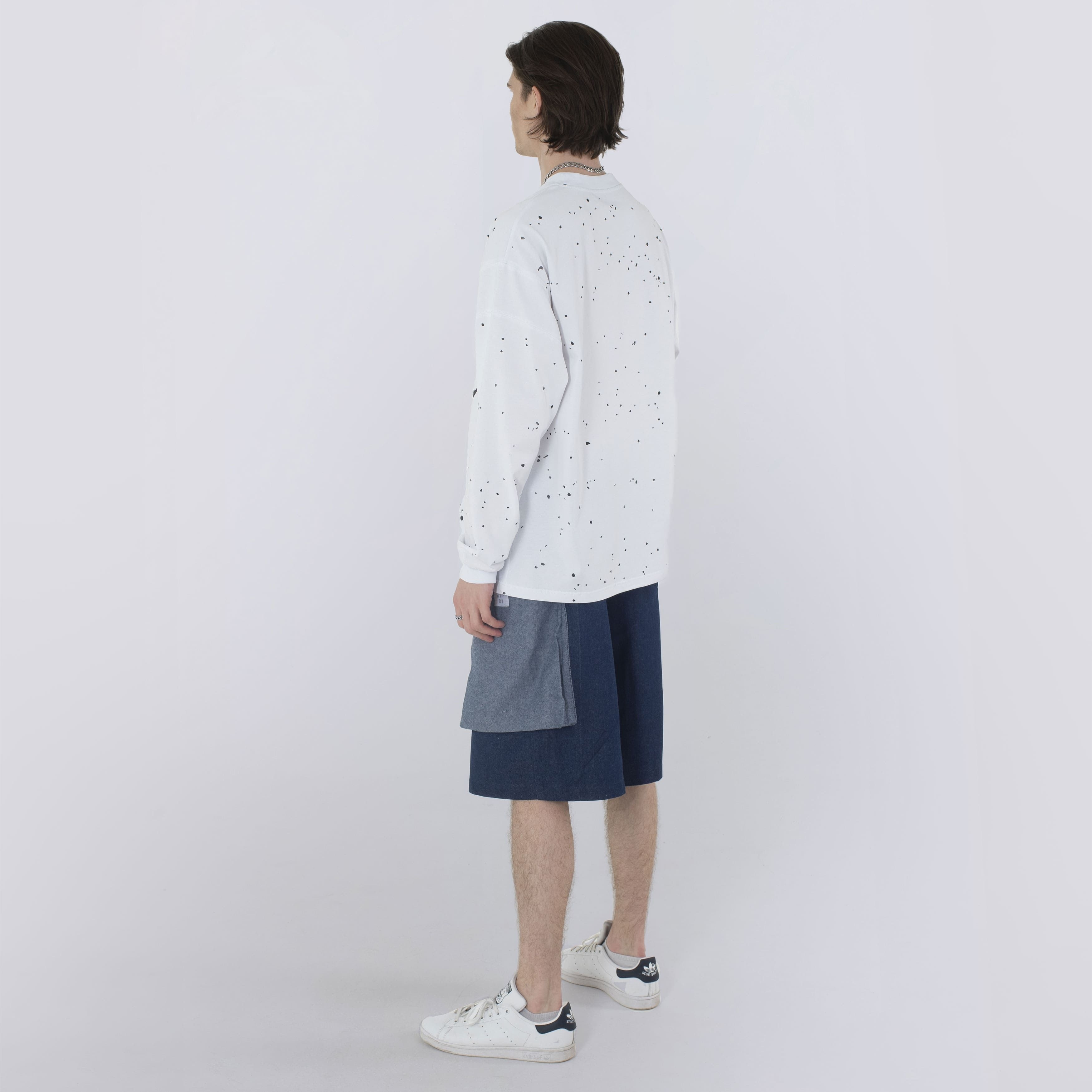 Особенности: джинсвоя синяя ткань в колорблоке с изнаночной стороной джинсы и плотный белый твил