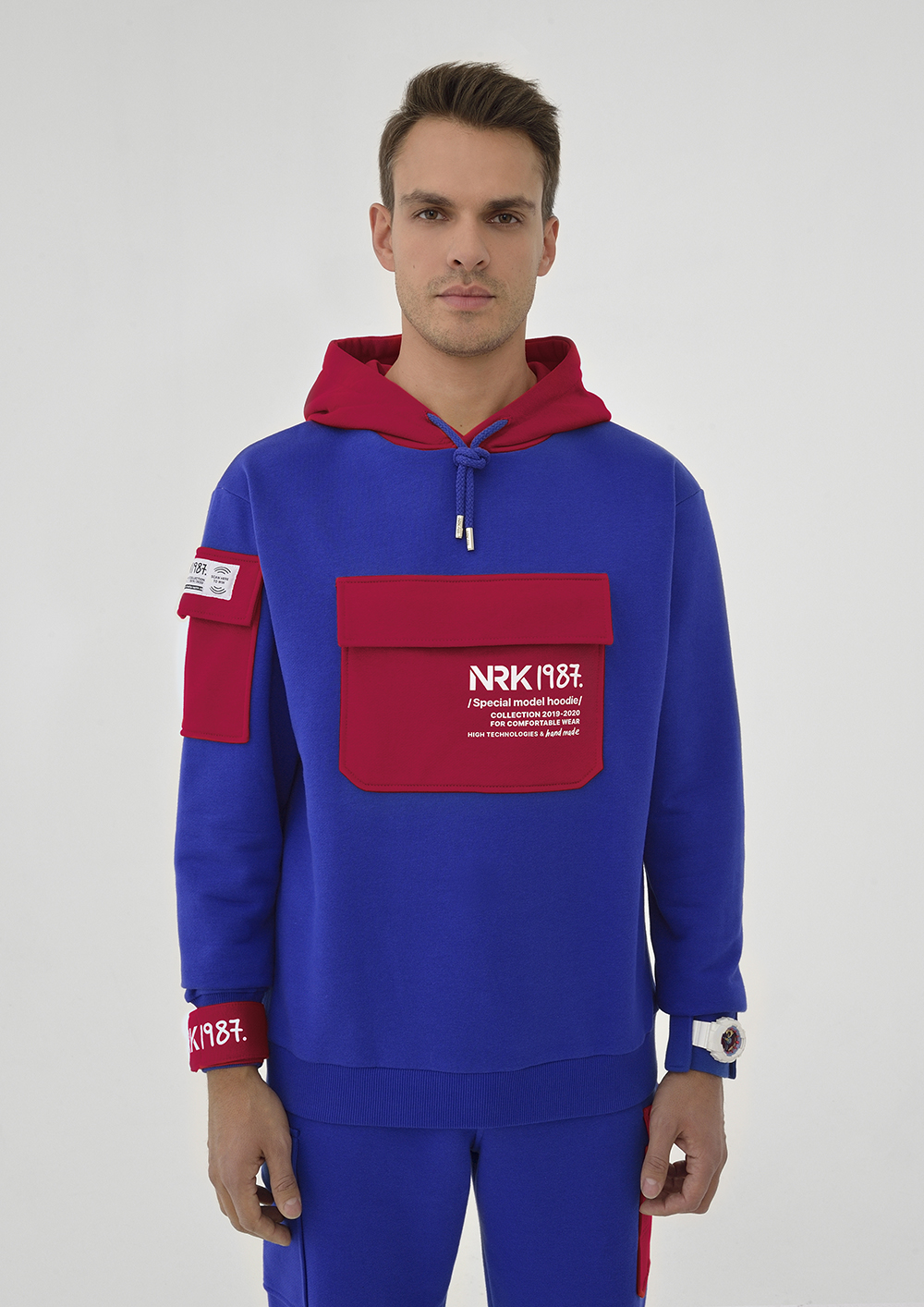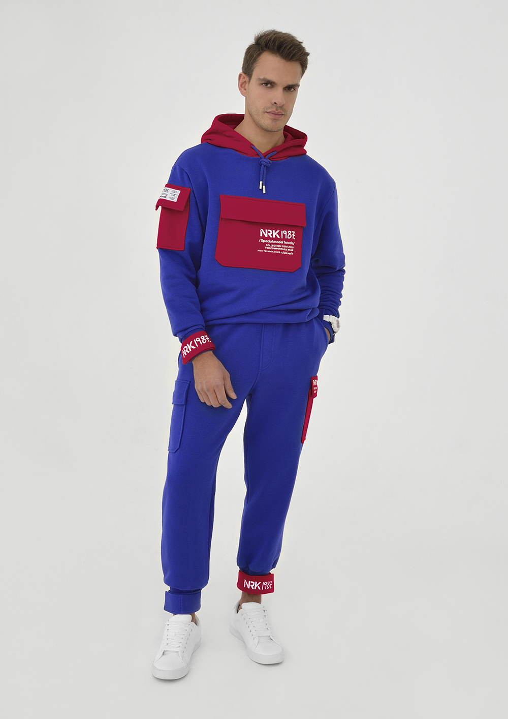 Худи и джоггеры сине-красного цвета из мягкого футера создают гармоничный повседневный образ, стильный и удобный. Насыщенный синий цвет с ярко-красными акцентами не позволит затеряться в городской толпе, материал на основе хлопка поможет надолго сохранить чувство комфорта, а волокна полиэстера — форму модели. Благодаря вместительным карманам на груди, рукаве и в джоггерах вы сможете взять с собой и удобно разложить все необходимое. Хлястики с липучками и фиксирующие манжеты на рукавах и штанинах добавляют модели практичности и удобства. Оригинальный манжет под часы на левой руке выдает в вас человека, дорожащего временем.