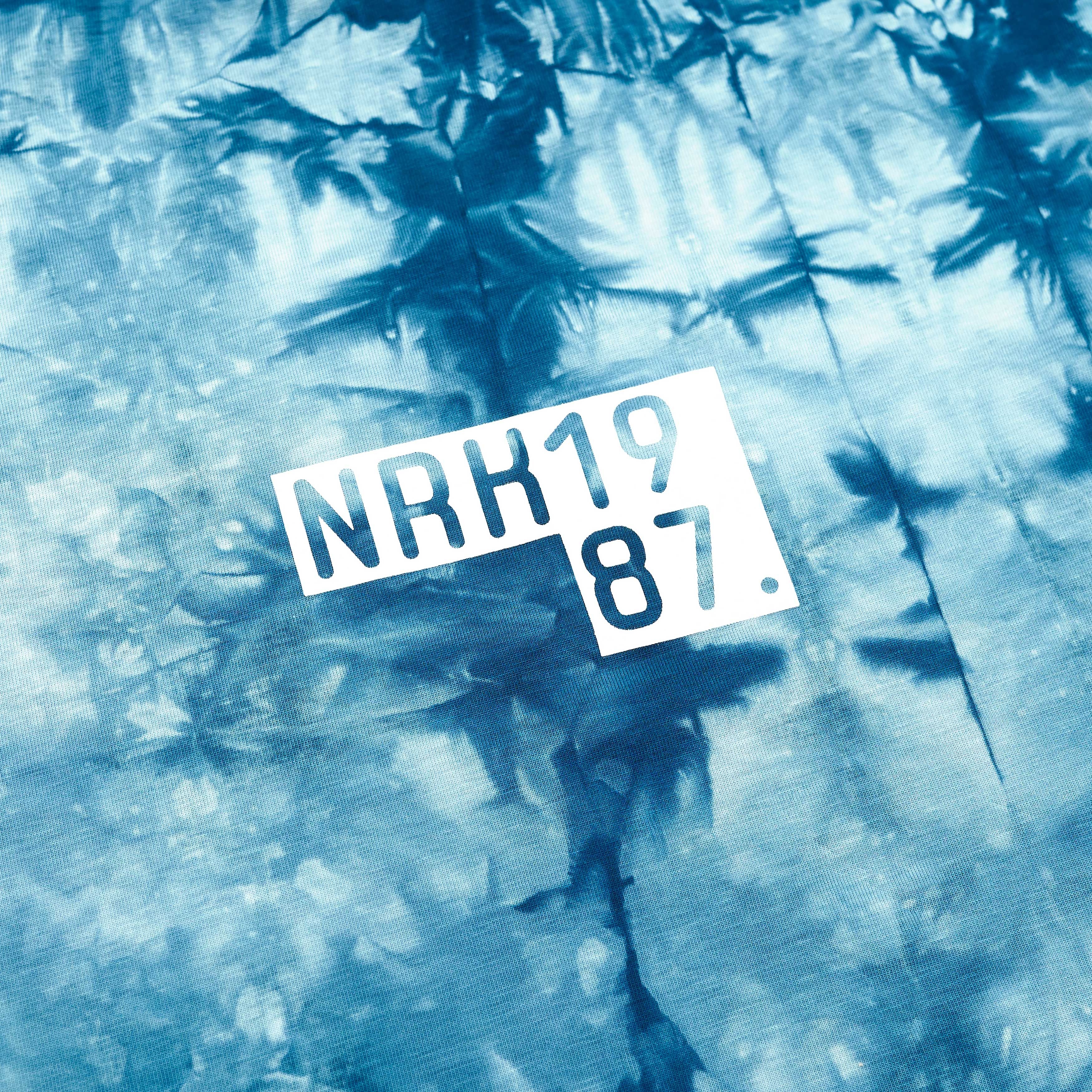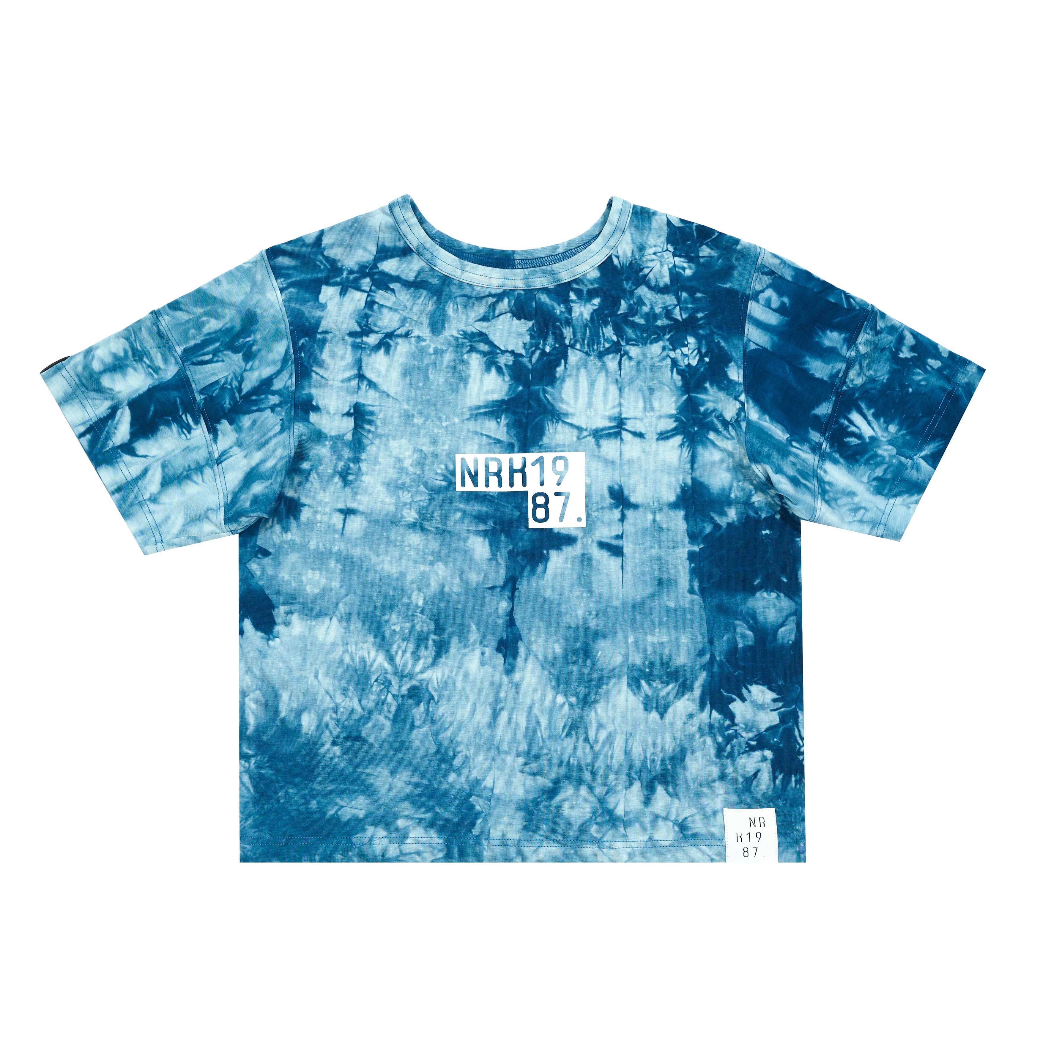 Футболка из плотного хлопка выкрашенная в темно-синий тай-дай. Свободный широкий силуэт со спущенным плечевым швом. Износостойкие принты с добавлением резины. Зашитая NFC метка под лого.