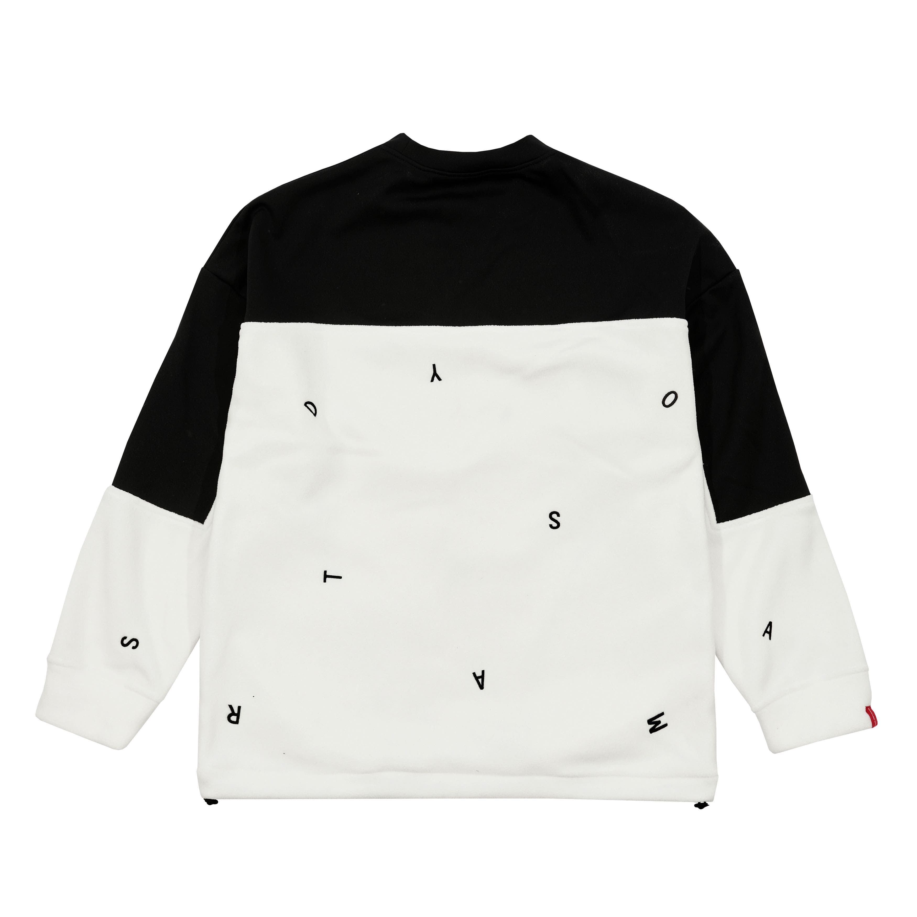 Черно-белая толстовка из сочетания двух материалов — верх из софтшелла с водоотталкивающим эффектом, низ из плотного мягкого флиса. Графика нанесена с помощью вышивки. Карманы на скрытой молнии по бокам. Утяжки для регулировки объема силуэта внизу. Широкий крой и oversize силуэт. Мягкие манжеты на эластичной резинке. Скрытый карман с GPS устройством и зашитая NFC метка под лого.