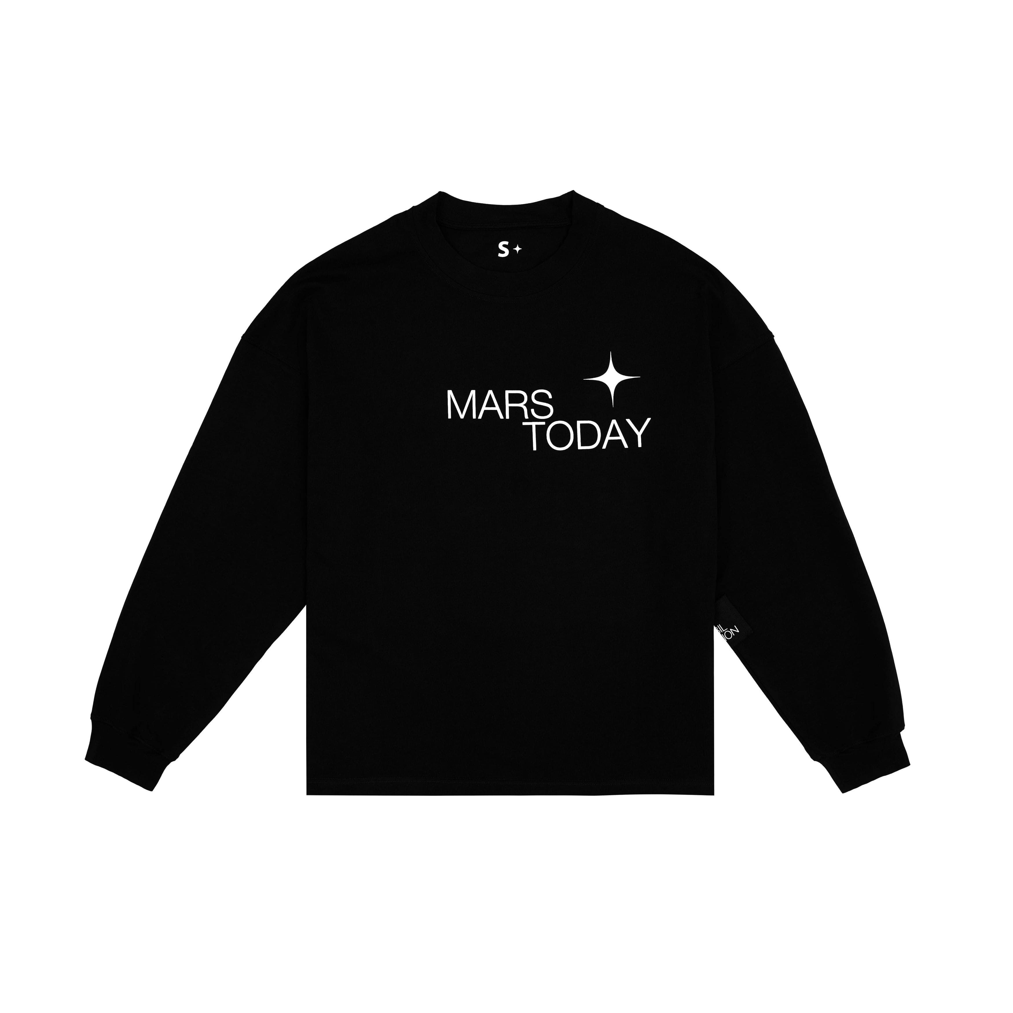 Áo tay dài làm từ vải cotton mịn màu trắng và đen. Hình in với thông điệp về sao Hỏa, các ký hiệu và chi tiết liên quan đến thiên văn học. Kiểu dáng suông rộng với đường may trễ vai. Hình in bền màu có thêm cao su. Túi ẩn với thiết bị định vị GPS và chip NFC được khâu dưới logo.