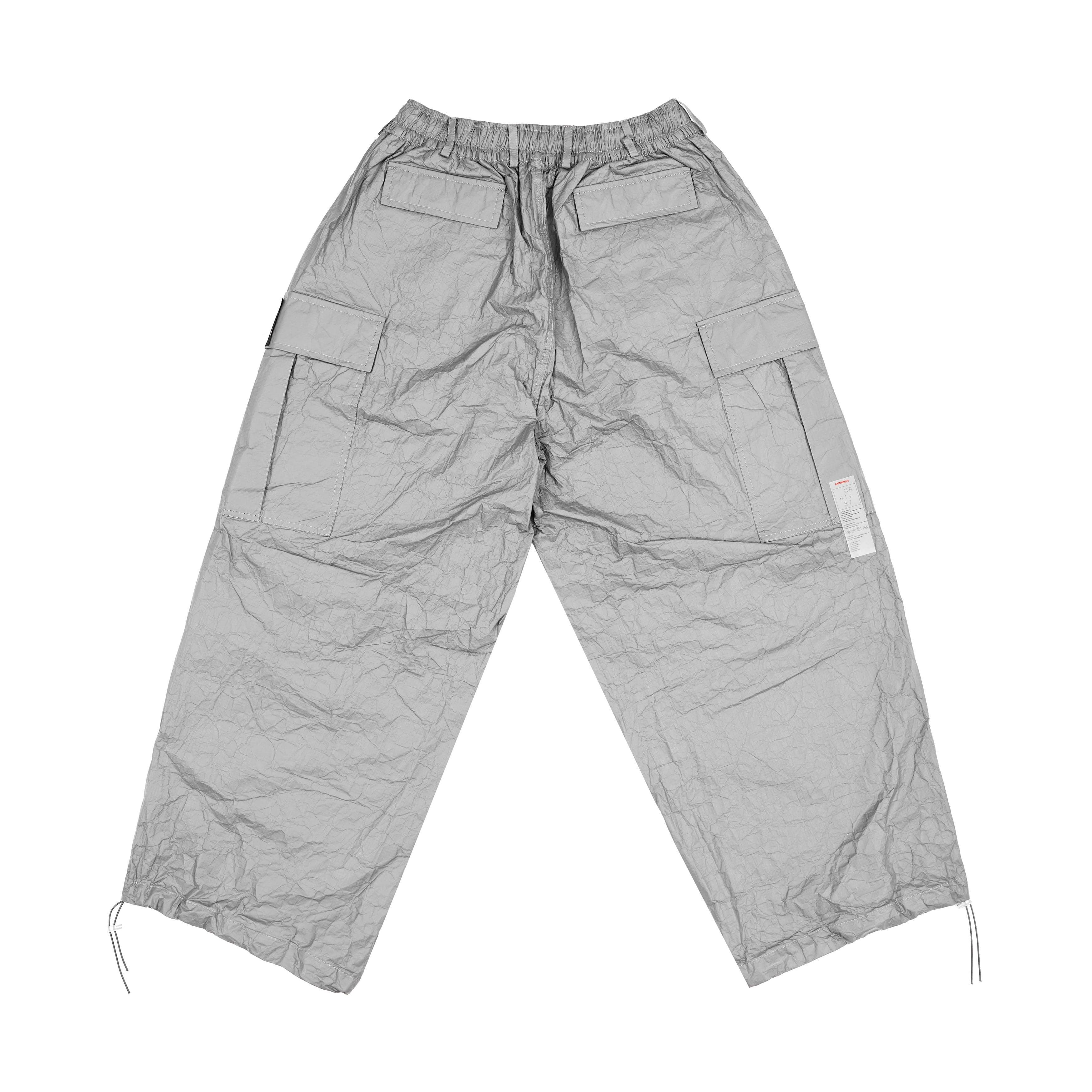 Quần dài cargo từ vải mềm tyvek. Túi quần to phía trong và túi to phía ngoài ở vùng eo và đầu gối. Chi tiết điều chỉnh độ bó của ống quần. Đai lưng chắc chắn. Khóa kéo kim loại chắc chắn. Dây buộc trang trí kéo dài. Logo nổi bật màu đen trên túi. Nhãn care label phía ngoài được khâu bằng chỉ đỏ.