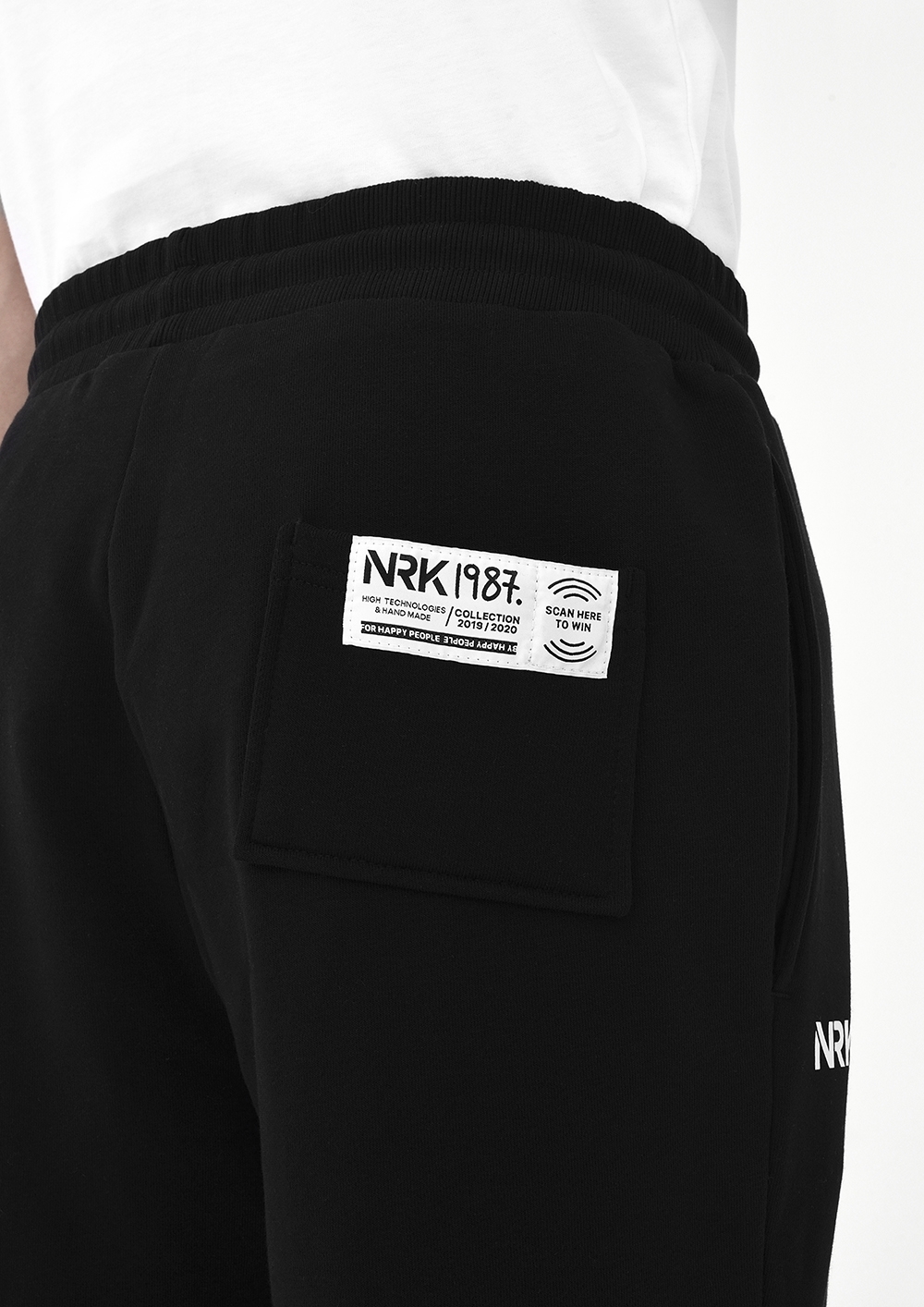 Cơ bản đen chạy bộ làm mềm chân thương hiệu có NRK1987 biểu tượng. Thoải mái của mặc được cung cấp bởi một bông-dựa vải đó sẽ giúp giữ hình dạng của sợi polyester. Nhìn hài hòa với áo NRK1987. màu tương tự.