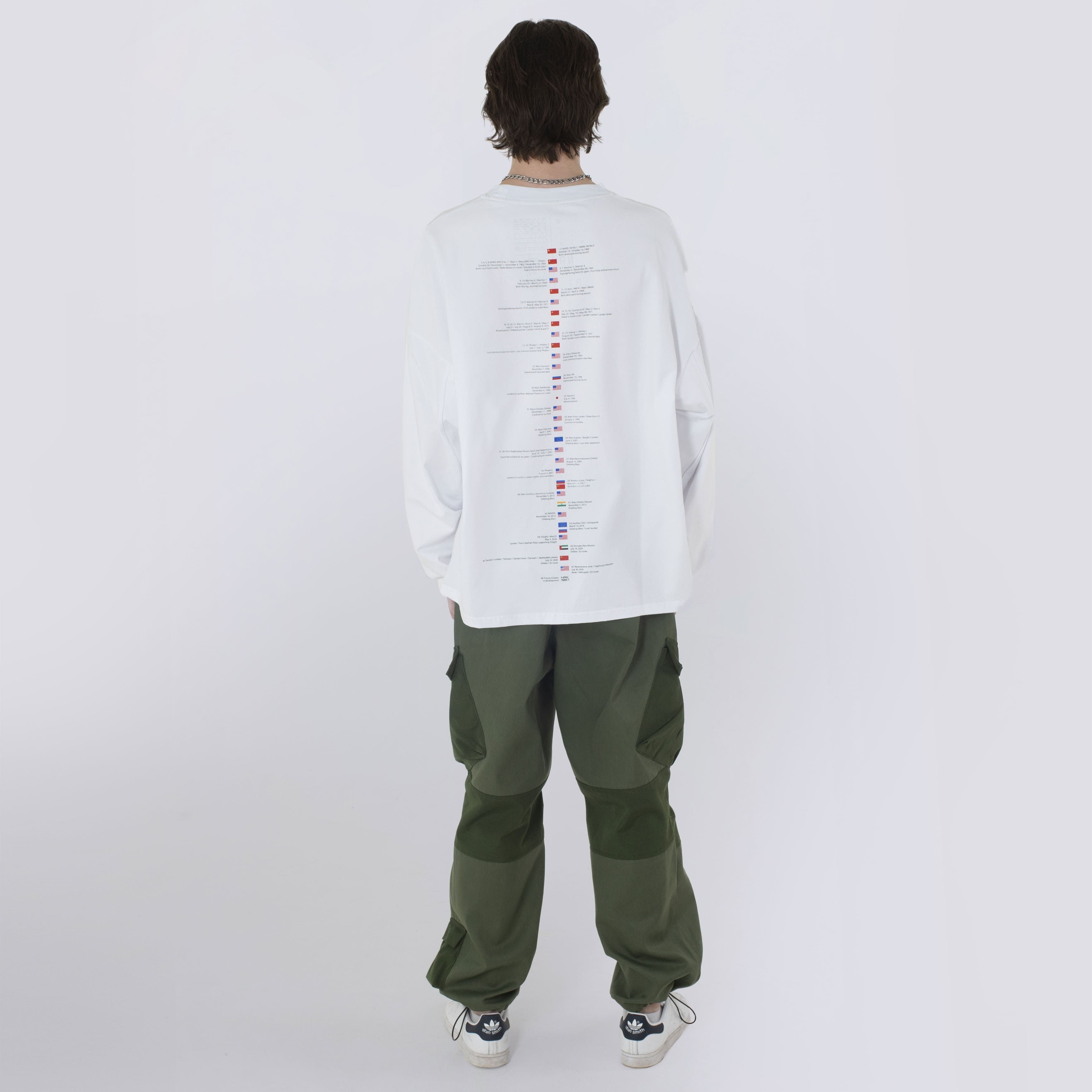 Áo dài oversized chất liệu cotton dày màu trắng và đen. Có một túi bí mật trên tay áo. Họa tiết ở mặt trước và mặt sau. Chip NFC bảo vệ dưới logo.